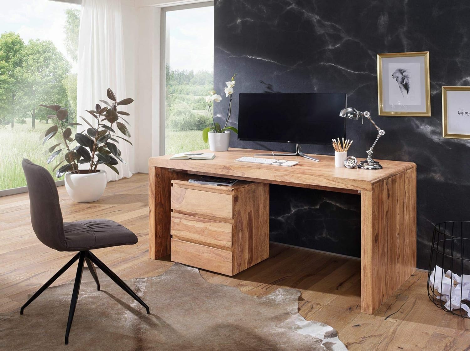 Bureau Acacia Massif : Très Pratique, Ce Bureau En Bois Massif Possède Un Passage Pour Les Câbles Afin Que Tout Soit Ordonné.