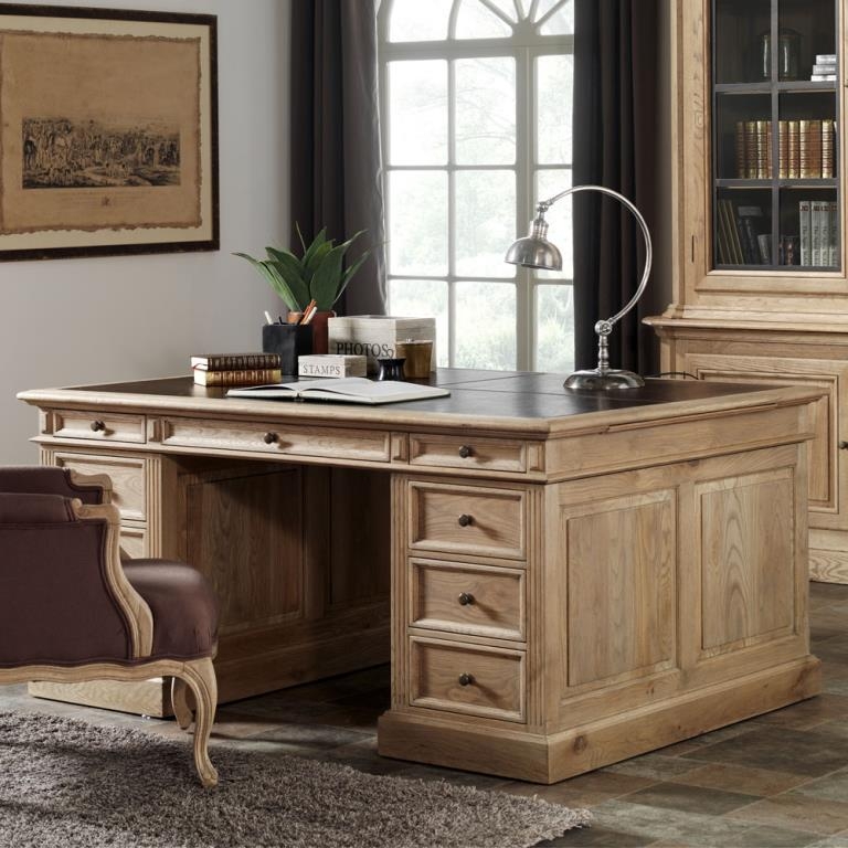 Bureau 6 Tiroirs Classique Chic Chene Massif Cuir 160x119x81cm Medicis Bureaux Pier Import . Vous Aimeriez Aménager Un Bureau Chic Et Moderne Selon Les Tendances Déco 2016 ?