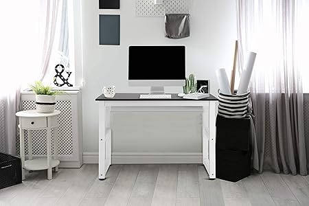 Mmt Furniture Designs Ltd Table De Bureau Moderne Avec Cadre En Acier Blanc Et Dessus En Bois Noir Amazon Fr Cuisine Maison : Ses Produits Innovateurs Et Personnalisés S'adaptent Parfaitement Aux Nouveaux Environnements De Travail.