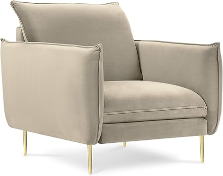Fauteuil Feliz En Velours Taupe . Son Piètement En Métal Noir Évasé.