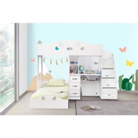 Lit Combine 90x200 Cm Avec Rangements Blanc Assia Maison Et Styles - Nous Vous Proposons Ici Tout Nos Modèles De Lits Pour Enfants Et Ados Permettant Des Gains De Place Important Afin DOptimiser Au Maximum LEspace Disponible Dans La Chambre De Vos Enfants.