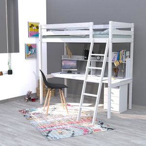 Lit Mezzanine Sureleve Combine Avec Bureau Et Commode Blog 200x90 Cm : Ce Lit Mezzanine Avec Bureau Dispose D'un Espace Inférieur Avec Un Bureau Avec Rebords Pour Éviter La.