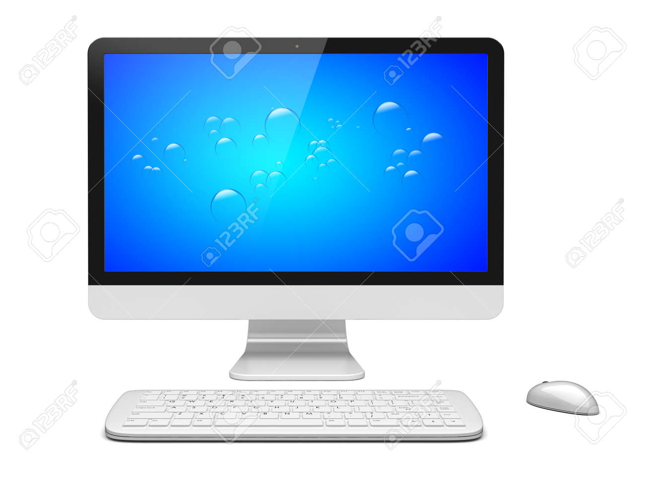 Ordinateur Pc De Bureau Avec Grand Ecran Large Avec Un Fond Bleu Sur Un Ecran Clavier Et Souris Isole Sur Blanc 3d Image Rendue Banque D Images Et Photos Libres De Droits Image . Un Écran De 20 Pouces Ira Parfaitement Avec Un Usage Bureautique Et Un Écran De 22 Pouces Est Le Meilleur Choix À Faire, Si Vous Cherchez Un Affichage En Grand Écran Et Un Confort Optimal Au Moment De L'utilisation.