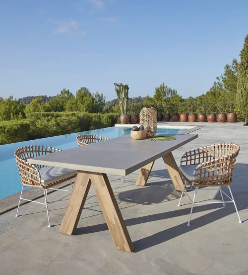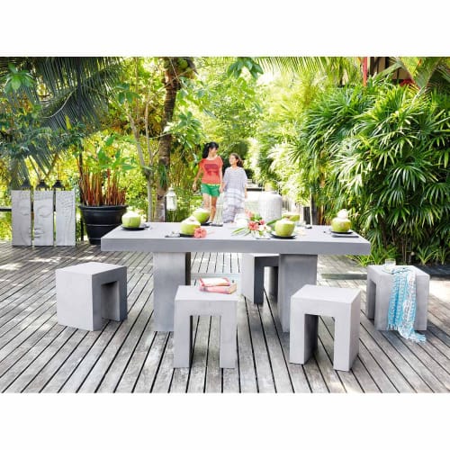 Tuintafel In Composietmateriaal Met Betoneffect En Massief Acaciahhout Voor 6 8 Personen L220 Meteores Maisons Du Monde - Nos Kits Béton Ciré Vous Permettrons Également De Recouvrir Des Meubles , Tables, Bureaux, Tables Basse, Consoles Et Même Votre Baignoires.