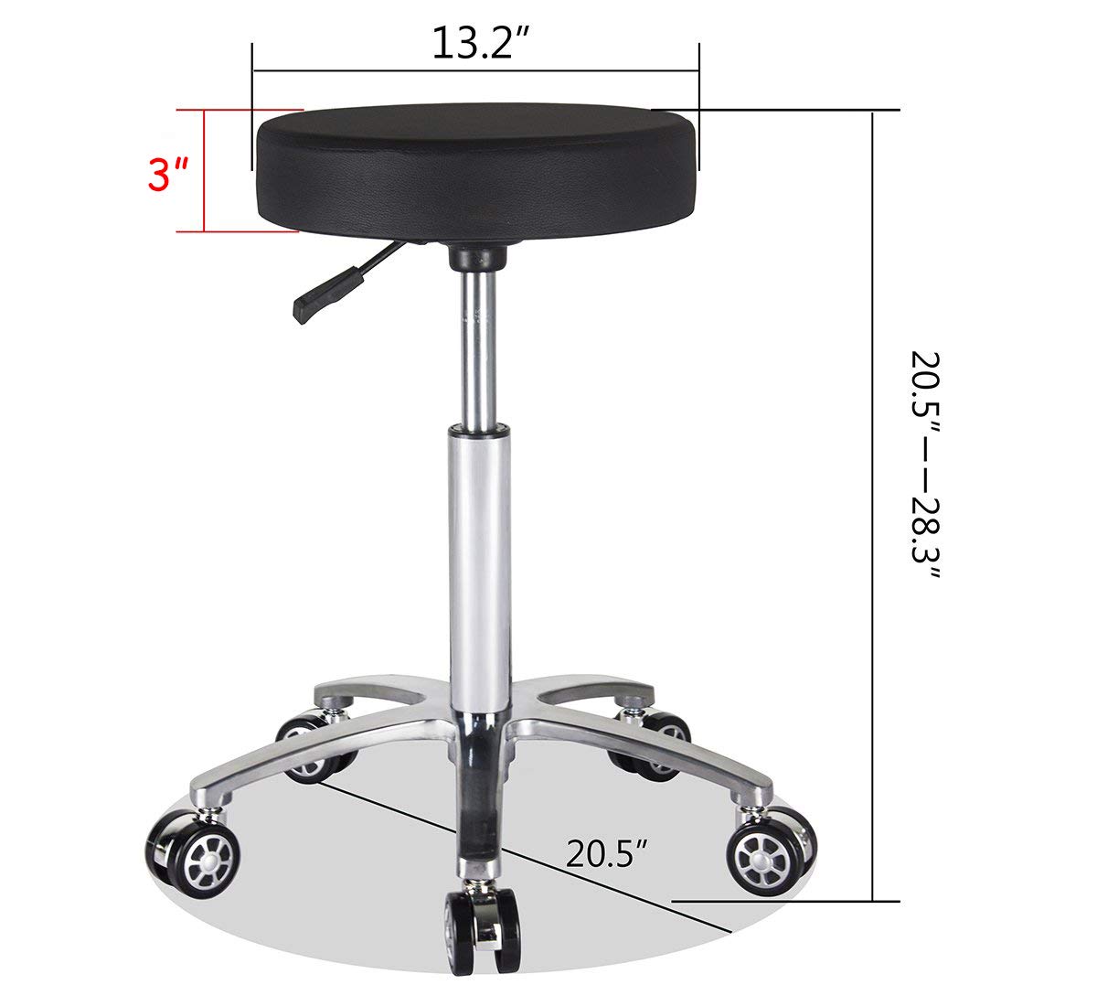Tabouret Roulettes Professionnel , Tabouret Sur Roulettes Règlable En Hauteur, Sans Dossier, Couleur Noir.